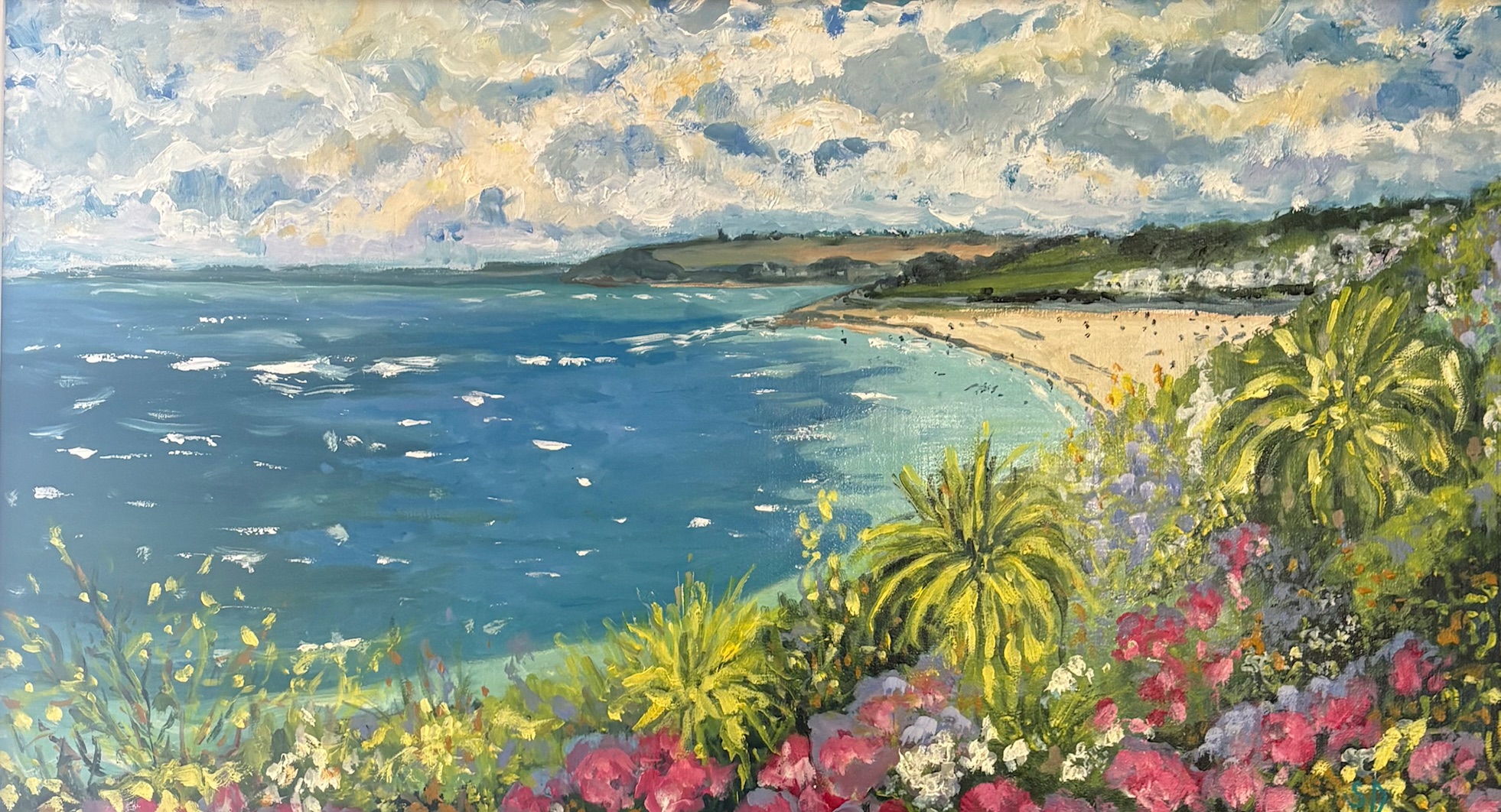 I have recently purchased a beautiful painting from the Cornish artist Sally Dennis. The quality and depth to the picture just captures the spirit of the sea. It just grabbed me the minute I saw it, the only way I can describe it is that it just feels like it belongs to me and is a part of me. I was surprised and pleased that Sally is a self-taught artist as I feel this gives her an edge with her naturally developed skills.